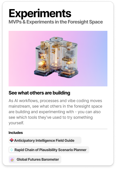 See what others in the futures and foresight space are building. You can even see what tools they used and try out your own.